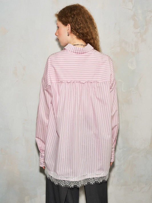 Striped Lace Cutout Bow Shirt