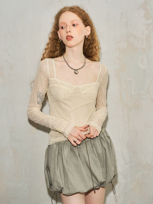 Square Neck Lace Bottoming Shirt