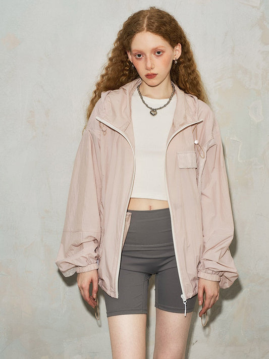 Lace Stitching Loose Hooded Sun Protection Jacket
