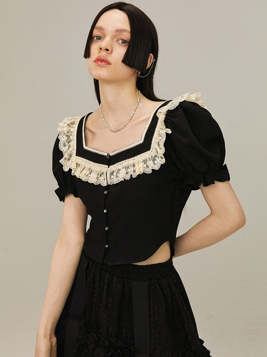 All-match-box-sleeved Lace Shirt