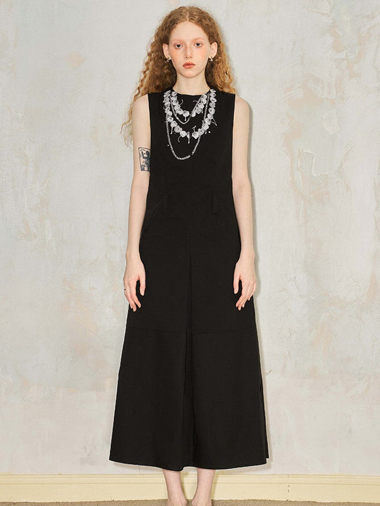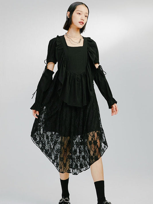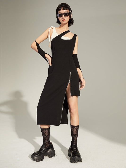 Detachable Sleeve Black Irregular Dress