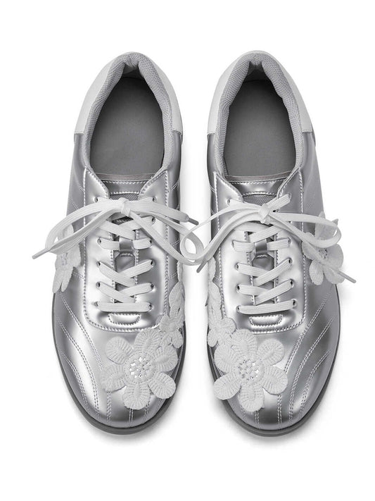 Silver Lace Flower Sneakers