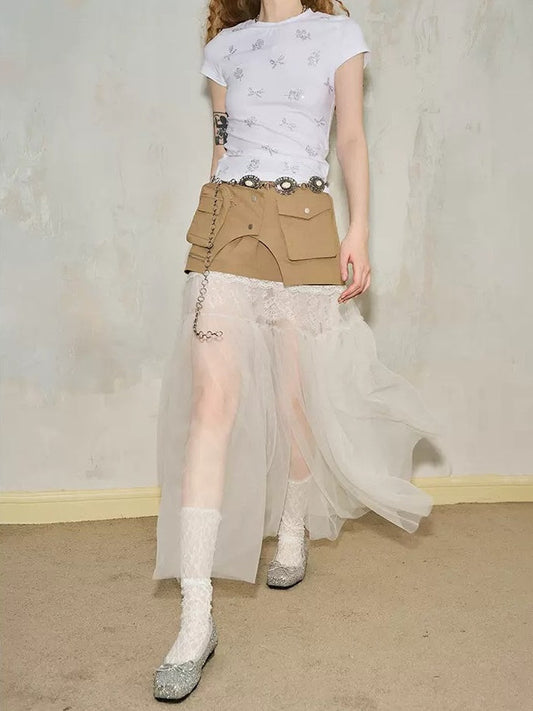 Mesh Lace Patchwork Work Skirt