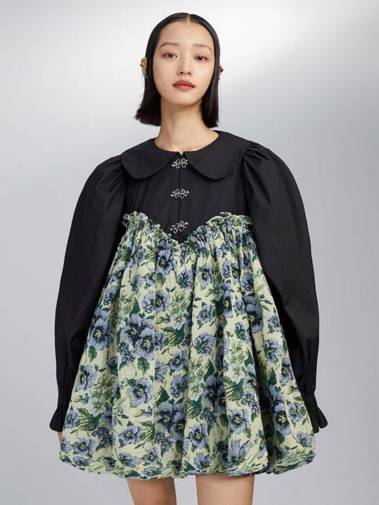 Doll Collar Floral High Waist Shirt Dress