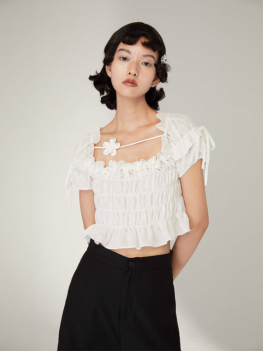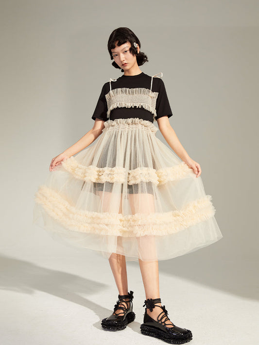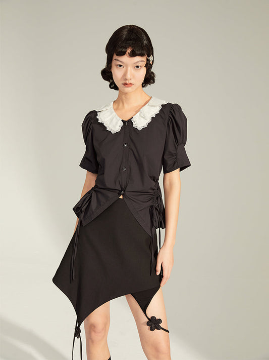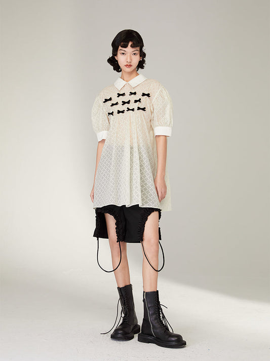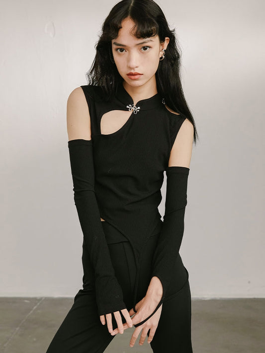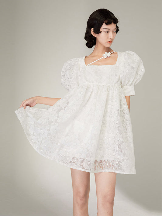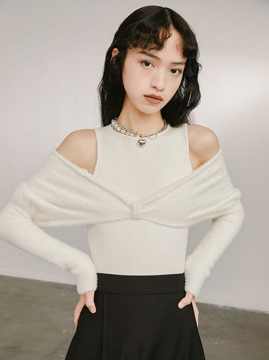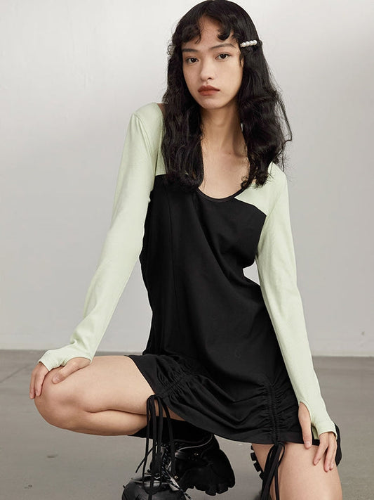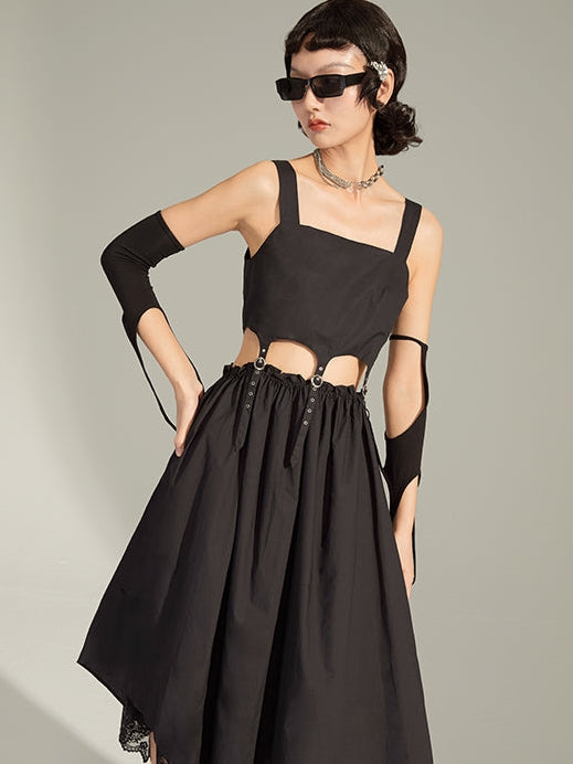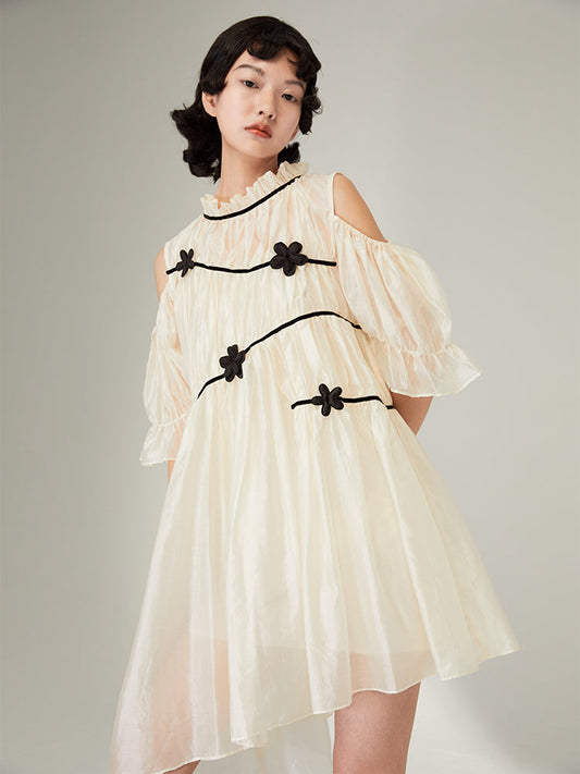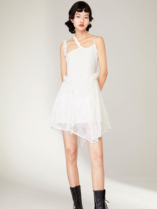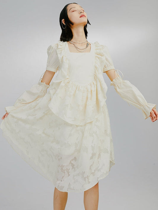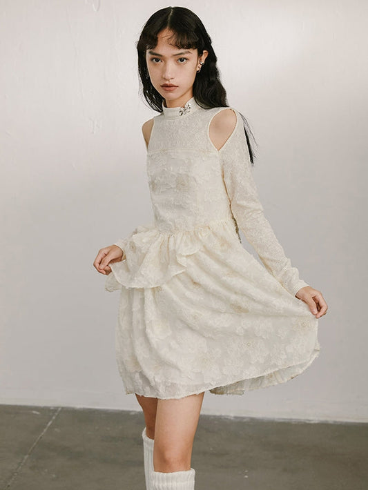 Detachable Sleeve White Long Sleeve Irregular Dress