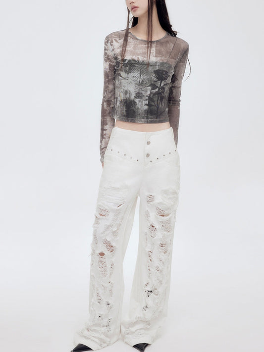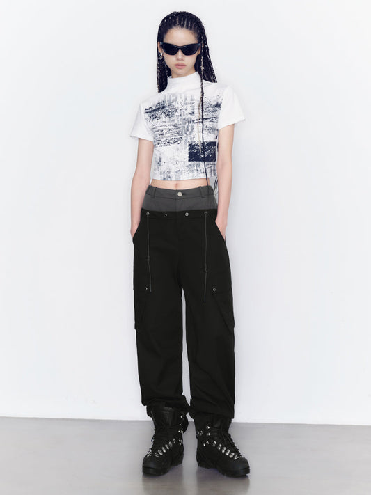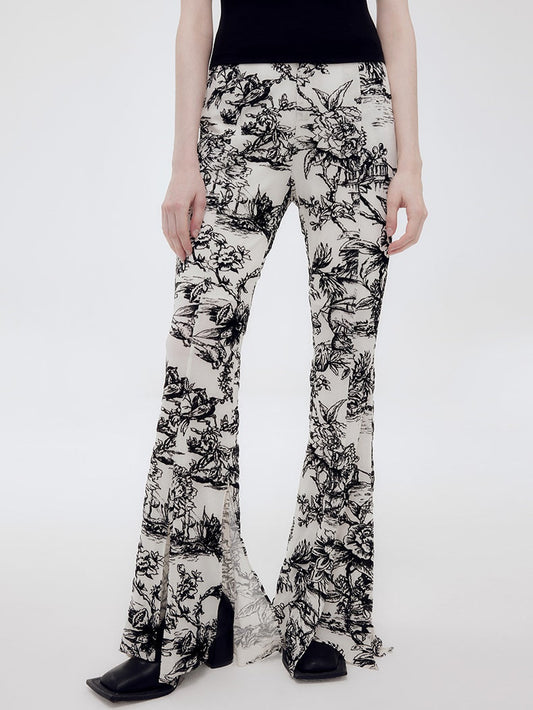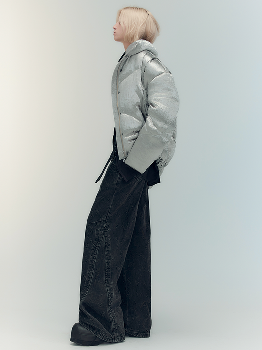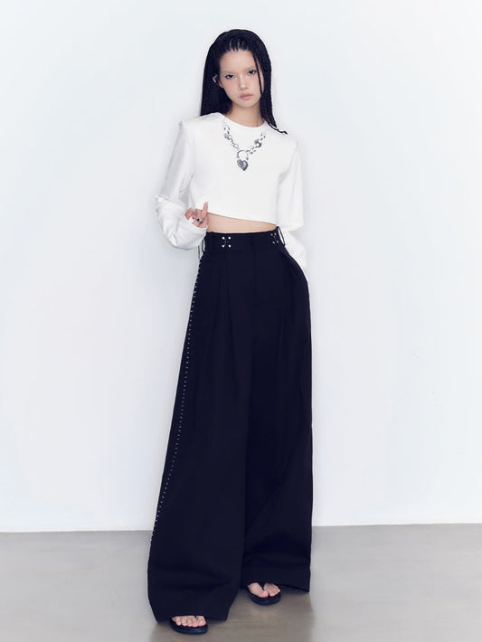 Sparkly Half-Design Nichi Loose Nichi Wide-Pants