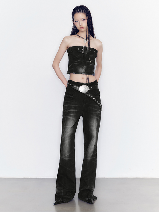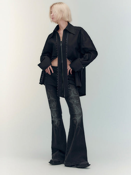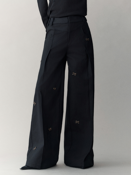 Ribbon-Charm Cute Nichi Metal Flare-Pants