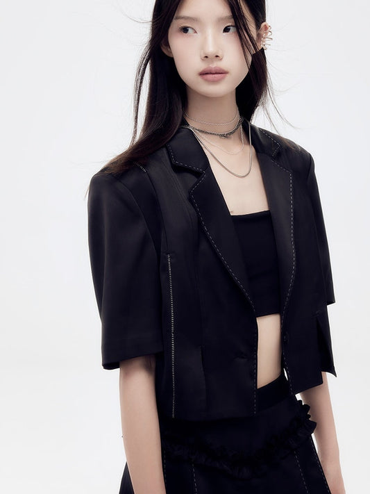 Stitch Frill Casual Casial Plain Jacket&Short-Pants _Set-Up