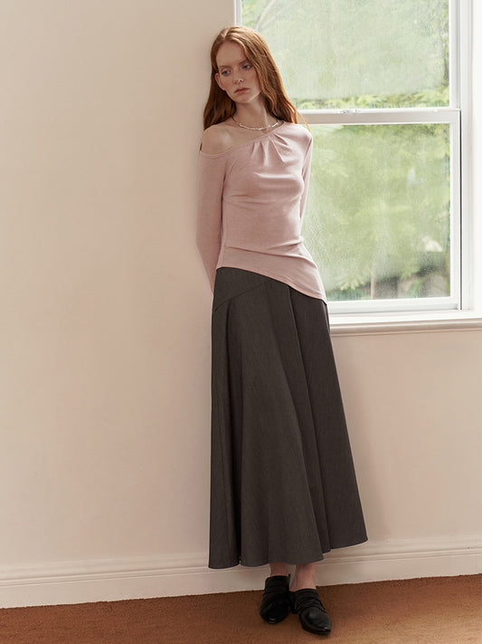 Asymmetrical Pleated Knit Top with One-Shoulder Design