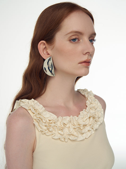 Breathable Ruffle Trim Pleated Wide-Leg Pants