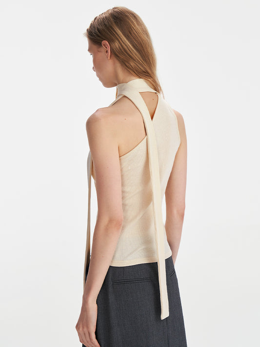 Pima Cotton Acetate Knit V-Neck Halter Top