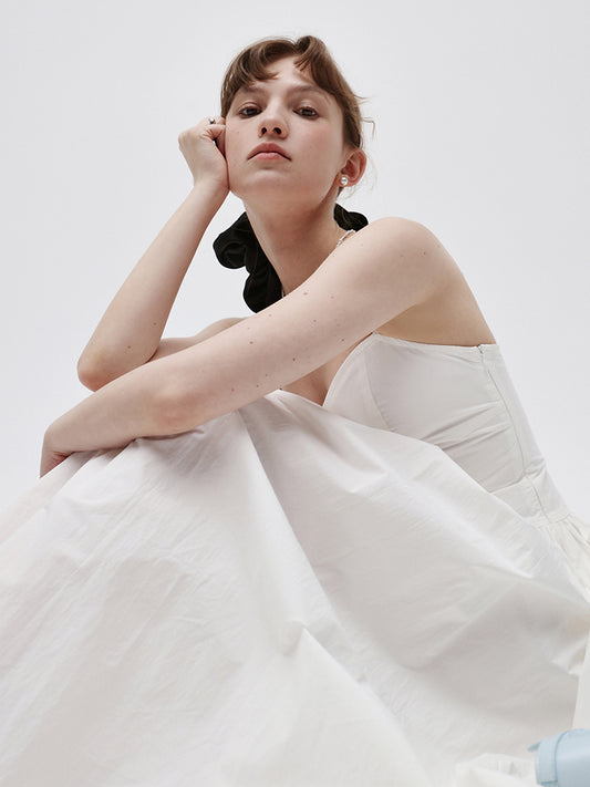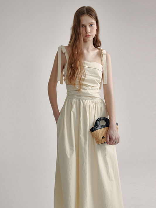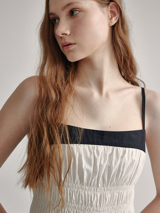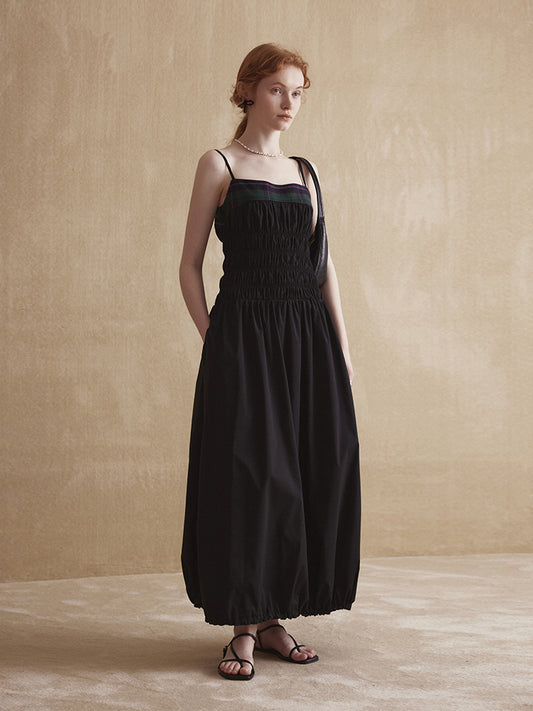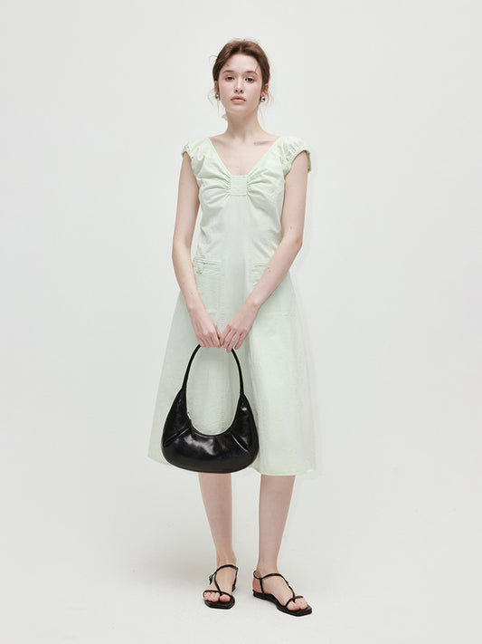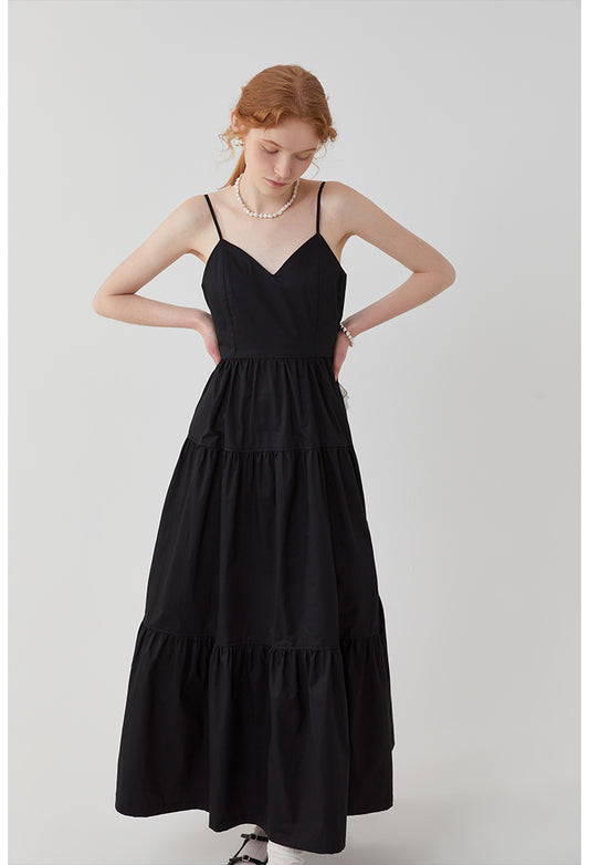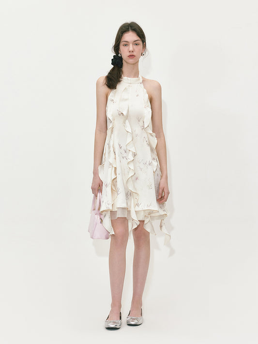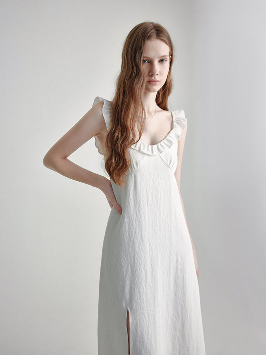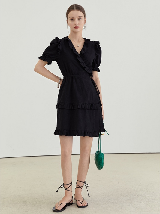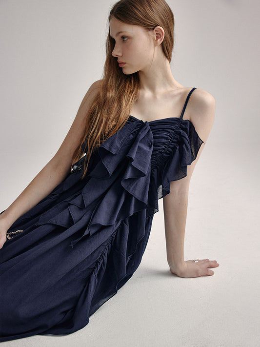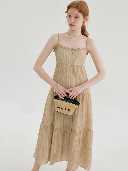 Summer New French Style Ruffle Edge Single Button Strap Dress