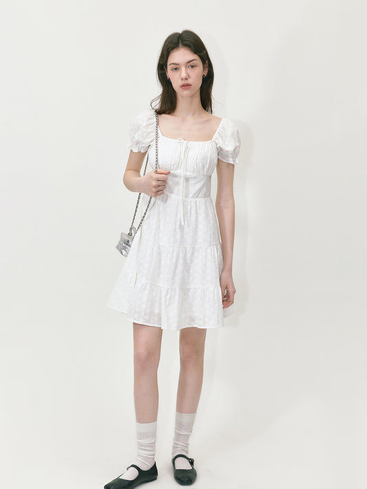 Summer Sweetheart Embroidered Puff Sleeve Mini Dress