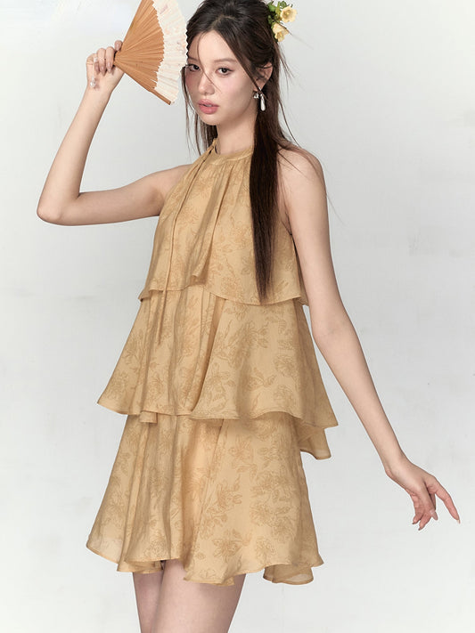 Mustard Yellow Halter Floral Dress