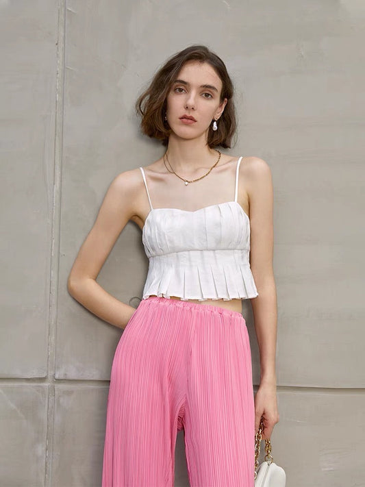 ナウア プリーツキャミソールトップ ホワイト