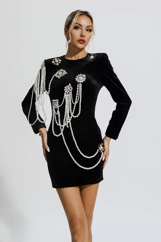 マイラ ブラック パール装飾 ベルベット ドレス
