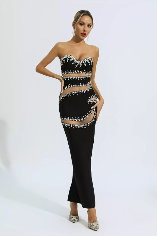 ナラ ブラック ビーズ メッシュ バンデージ ドレス