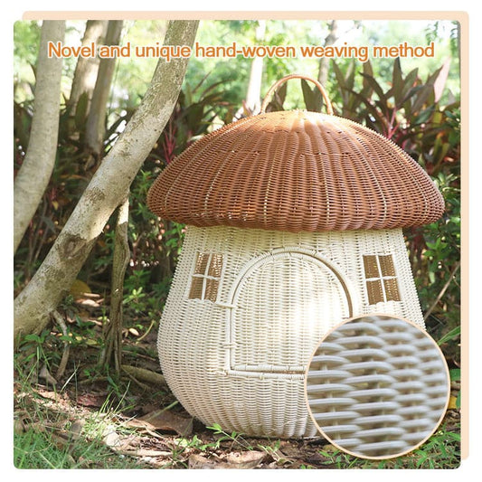 マッシュルームハンドメイド旅行用ラタン猫ケージ猫バスケット