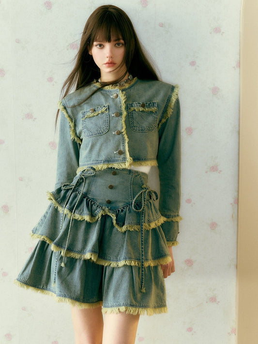 切りっぱなしデニムケーキスカート&ショートジャケット