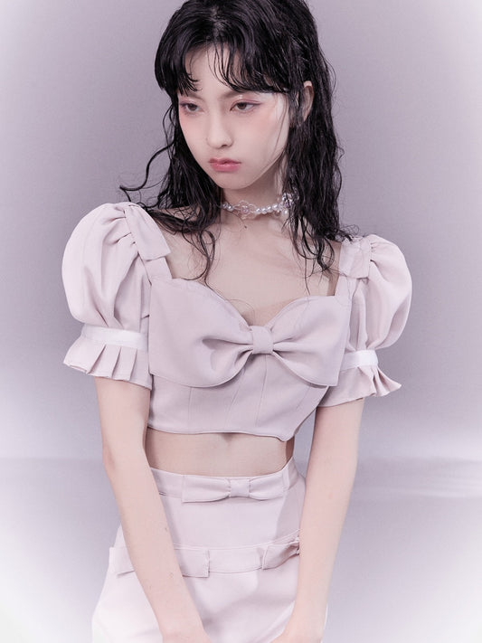 リボンパフィーショートキャミソール&リボンケーキスカート