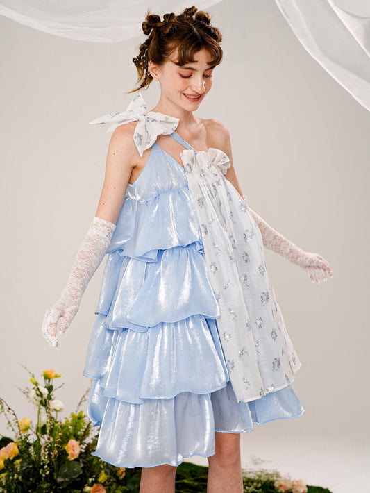 リボンタイ ティアード マキシドレス ブルー