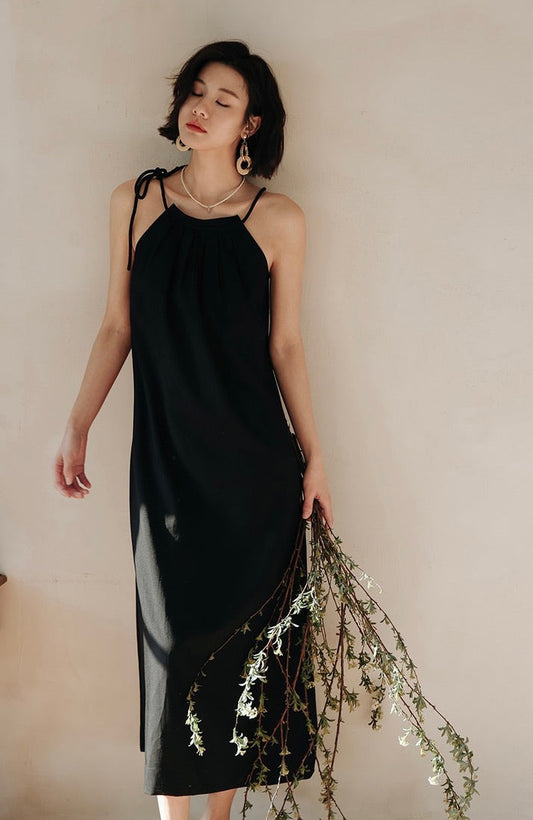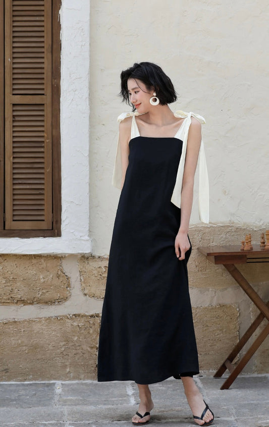 リボンタイ マキシドレス ブラック
