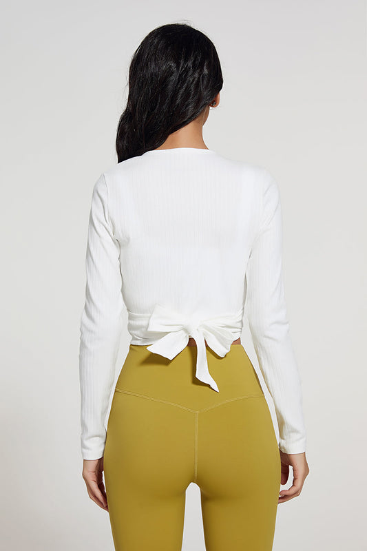 リブ編み Vネック バンデージ ラップ ブラウス クロップトップ