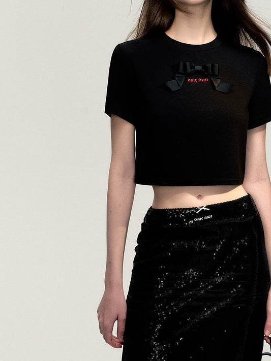 リボンショートかわいいカジュアルTシャツ