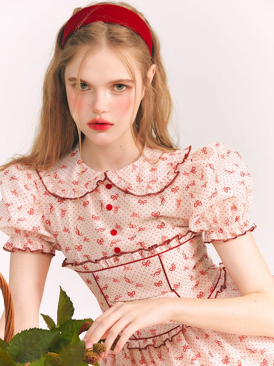 セールリボンプリントドールカラードレス
