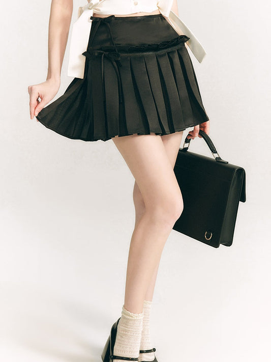リボン光沢プリーツスカート