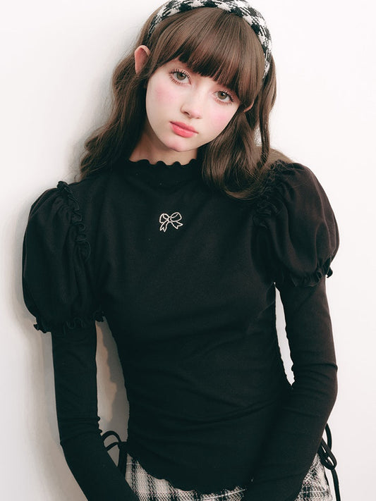 リボンドローストリングバブルスリーブボトムシャツ