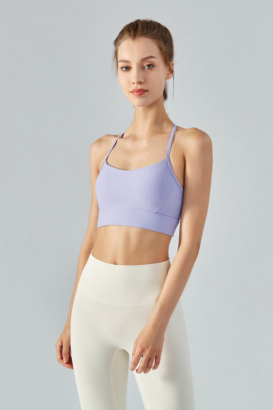 リブ編みUネックラインスポーツブラ
