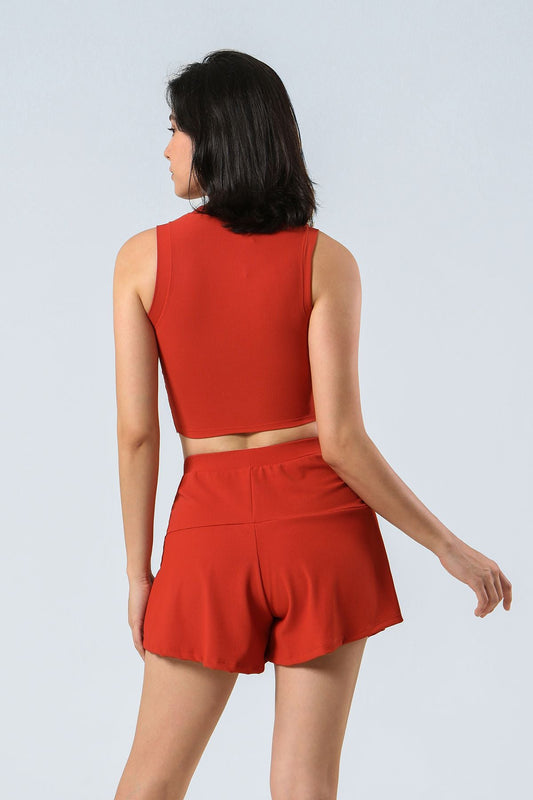 リブ付きタンクトップとショーツのアスレジャーセット