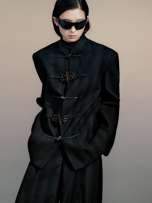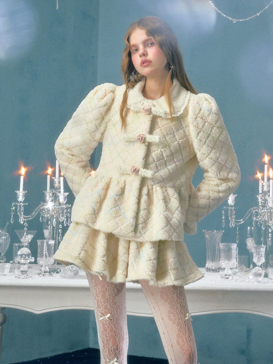 ローズアクセントロンバスノーカラーパフスリーブショートコート&フレアスカート