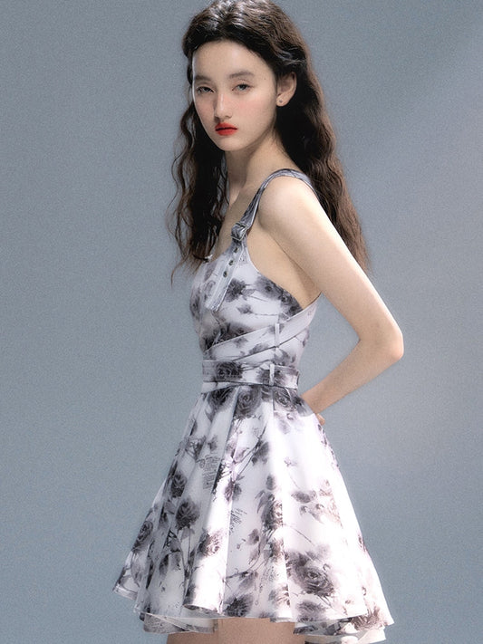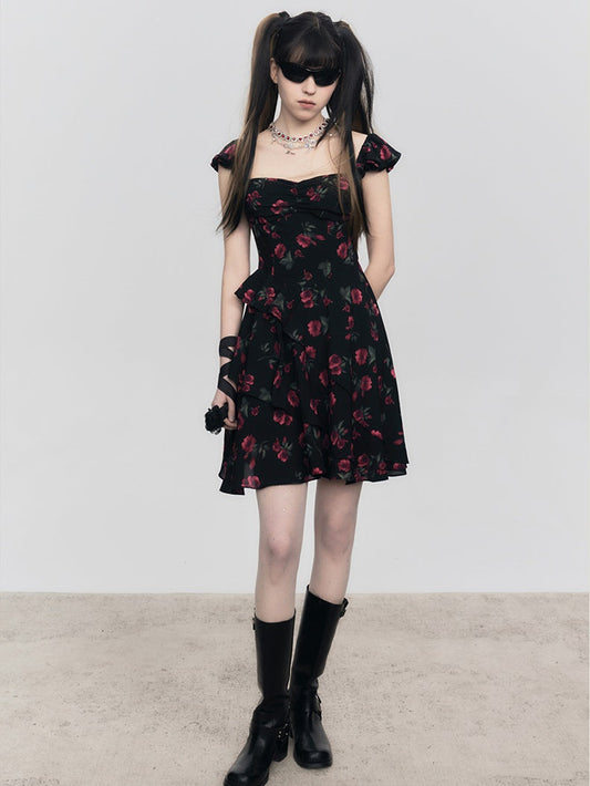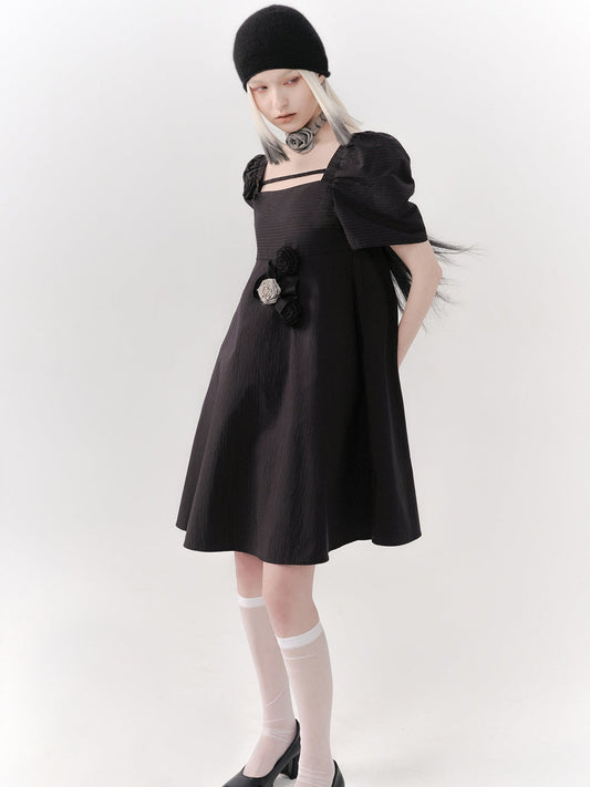 夏にぴったりのロマンチックな黒のフレンチAラインドレス