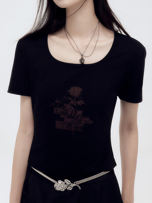 ローズデザイア スクエアネック パフスリーブ Tシャツ
