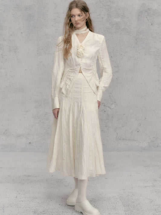 ローズフレンチVネックマイクロウエストシャーリングシャツ&スカート