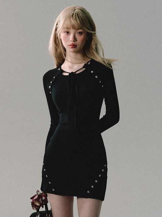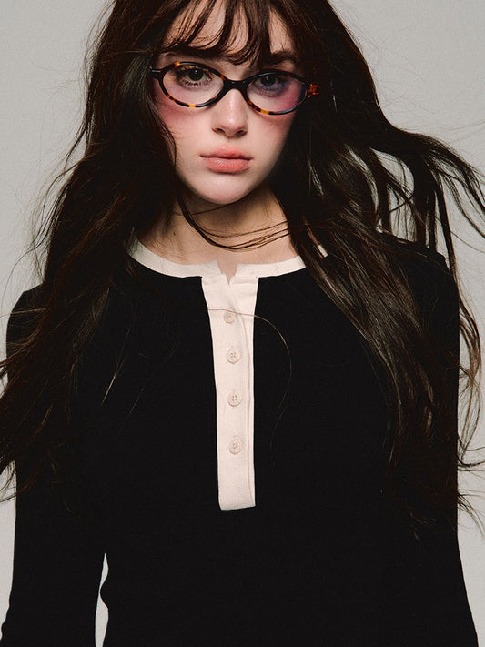 ラウンドカットのバイカラーシックスリムカジュアルニット