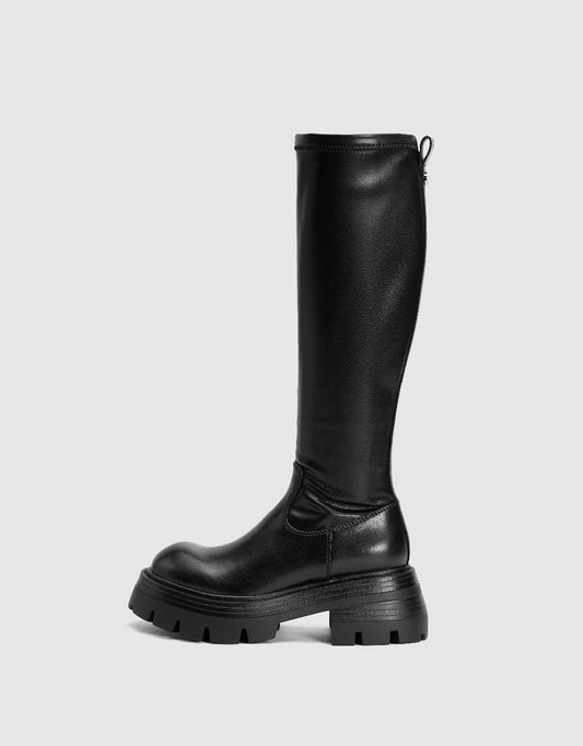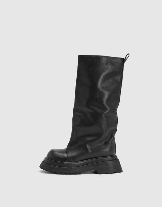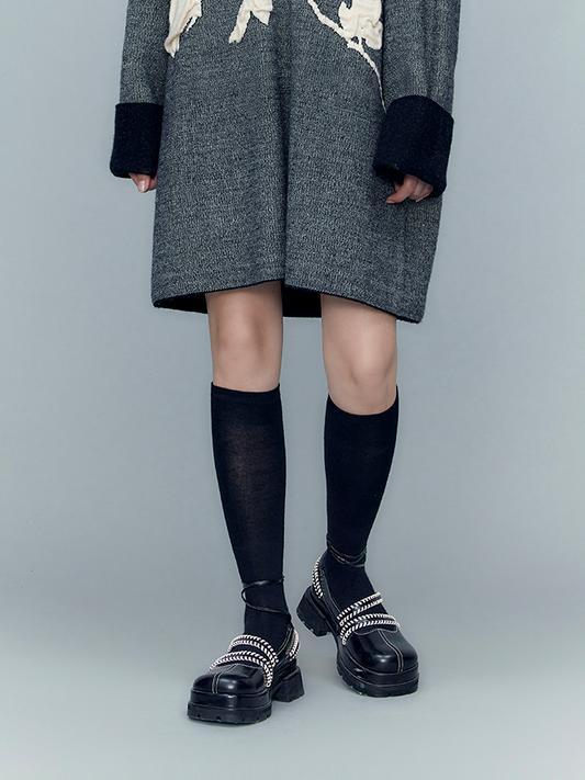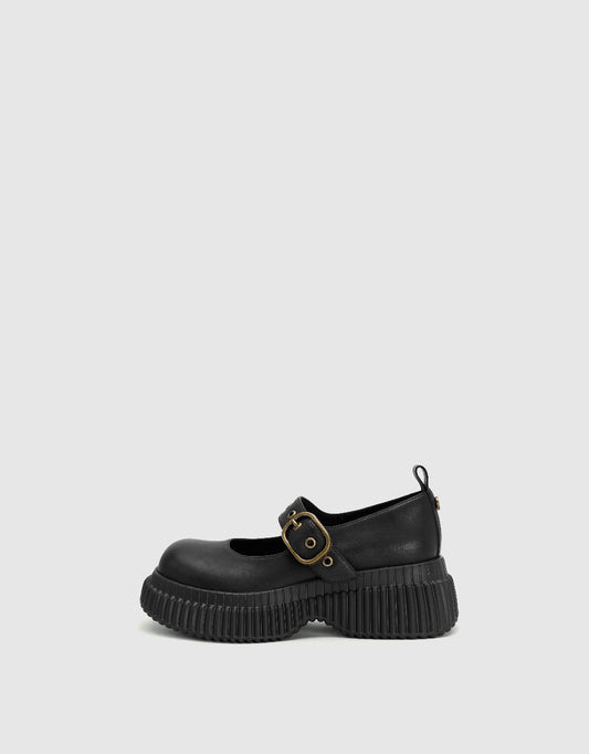 ラウンドトゥ プラットフォーム メリージェーン レザーシューズ
