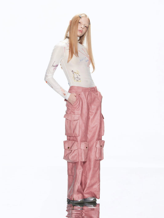 Rrinted Long-Sleeve Sheer Mock-Neck Top RUN0017