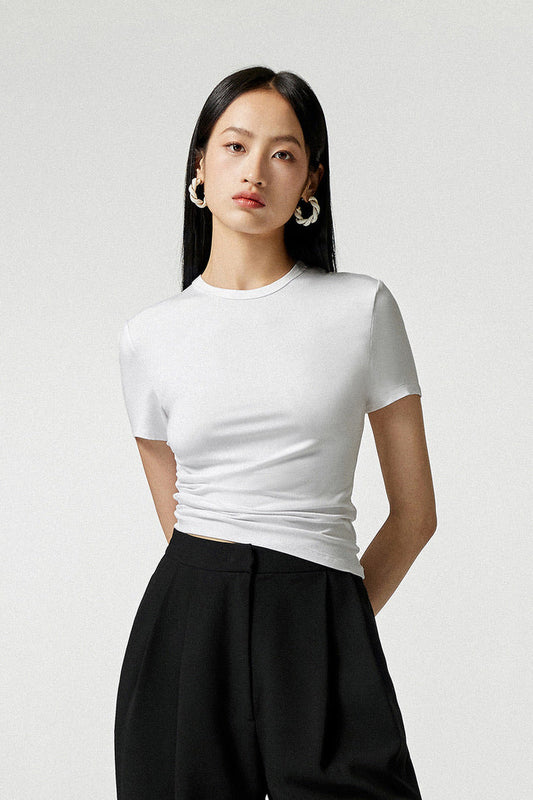 サイドギャザーアシンメトリーヘムTシャツ(ホワイト)