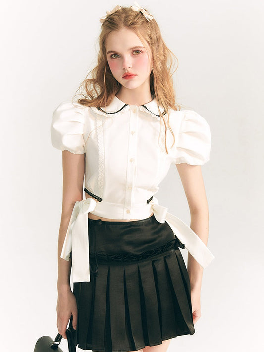 サイドリボンドールカラーパフスリーブシャツ