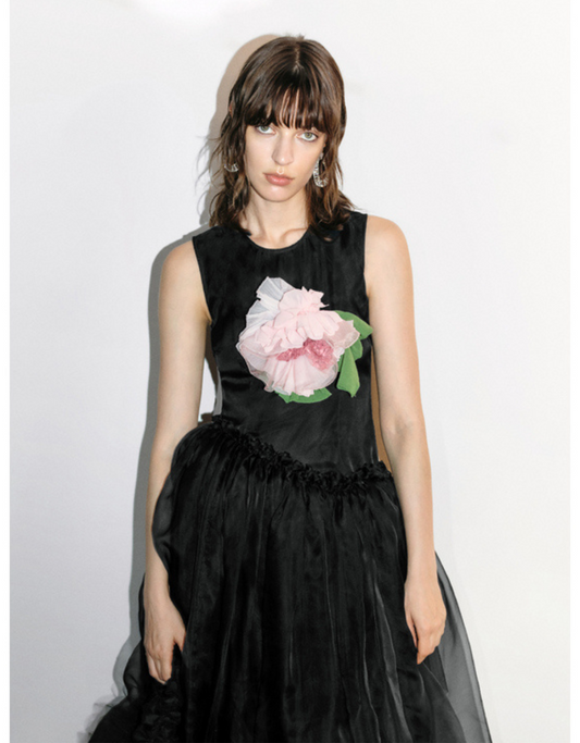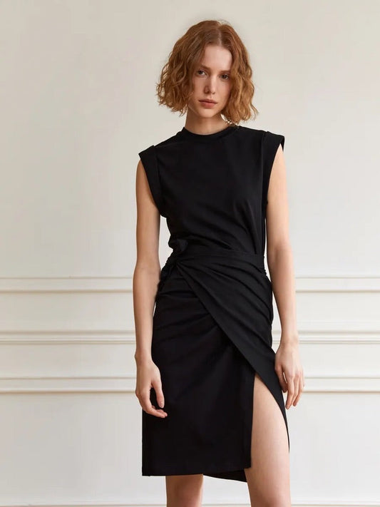 ノースリーブ ボックスラップドレス ブラック