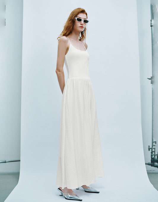 ノースリーブAラインドローストリングドレス