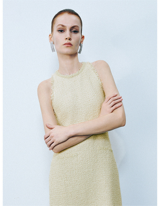 Sleeveless Raw Hem A-Line Tweed Dress