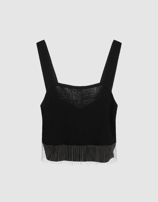 Sleeveless Square-cut Collar Knitted T-Shirt