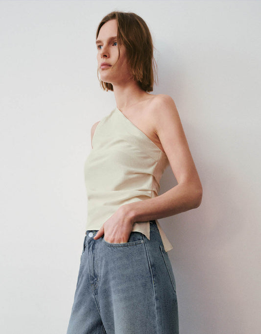 Sleeveless One Shoulder Skinny Blouse