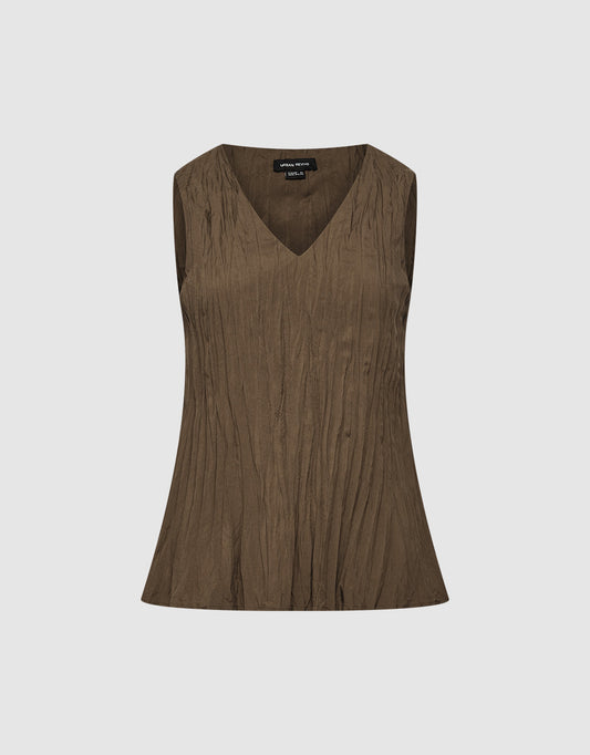 Sleeveless Shirred V Neck Blouse