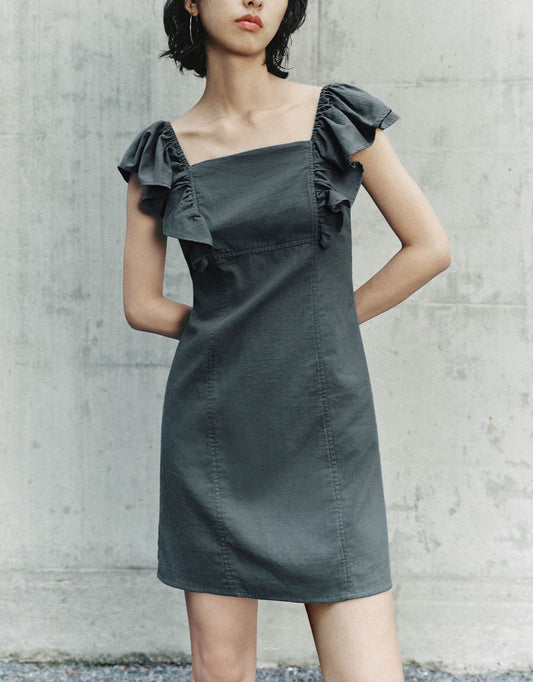 Sleeveless Square-cut Collar A-Line Dress