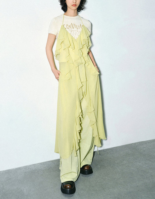 Sleeveless Ruffle Halter Neck Shirt
